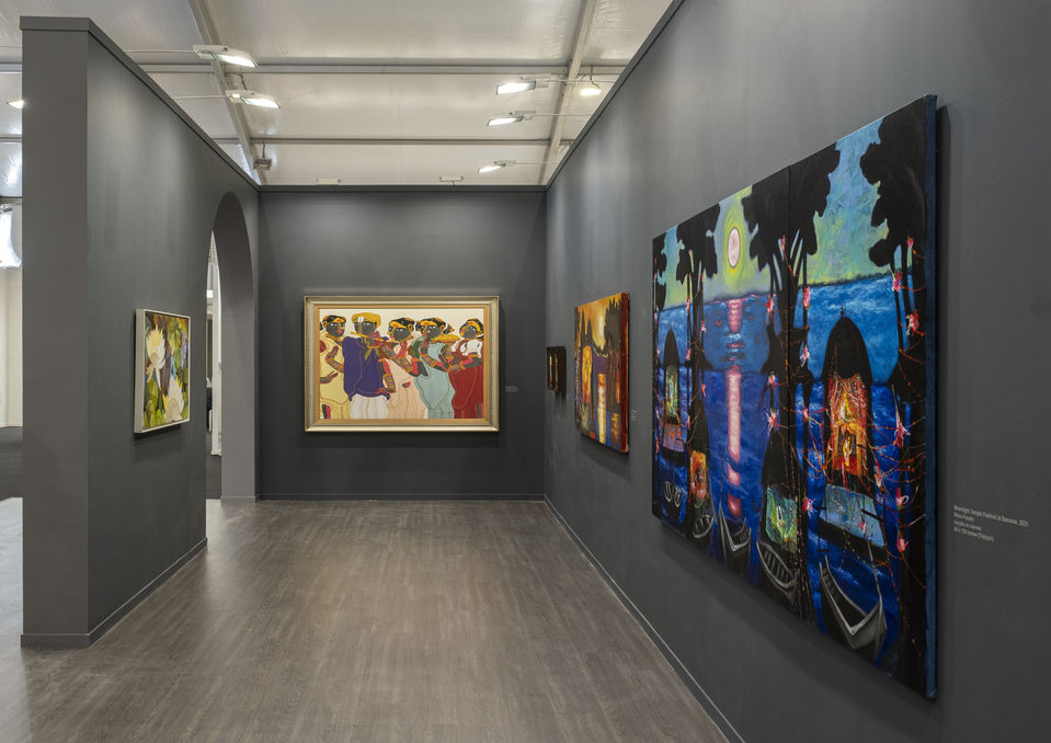 As part of Gallerie Nvyā’s presentation, on one hand one can see Sakti Burman’s pieces are seen to depict community, liberation and devotion; while on the other Manu Parekh’s city of Varanasi looks at the radiant capacity of the urbane to exude divinity. The works on display cover a range of subjects, including figuratives of Thota Vaikuntam, floral compositions of Sri-Lankan artist Senaka Senanayake alongside, an imposing bust by Ravinder Reddy. They are varied in colour and in spirit, evoking fluttering